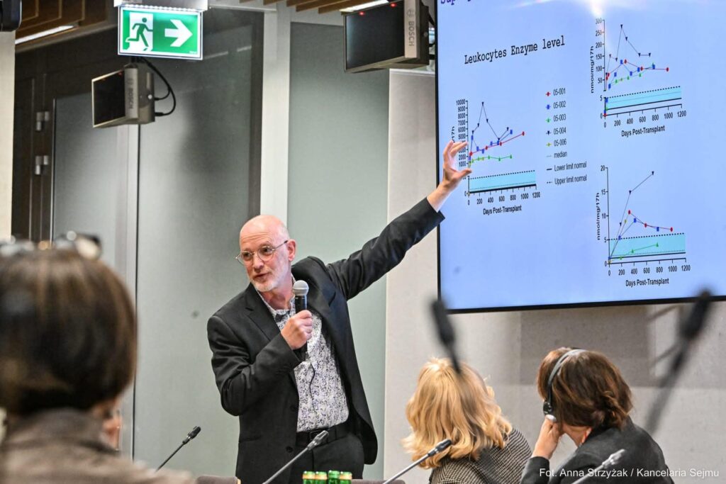 W szczególny sposób przywitałam naszego gościa honorowego – profesora Roberta Wynna, wybitnego eksperta w dziedzinie transplantacji szpiku kostnego z Royal Manchester Children’s Hospital. Pan profesor podzielił się z nami swoim ogromnym doświadczeniem i wiedzą na temat potencjału terapii genowej w leczeniu leukodystrofii metachromatycznej, co było niewątpliwie inspirującym punktem dzisiejszego wydarzenia.