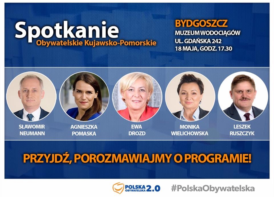 W ramach programu #PolskaObywatelska w czwartek 18 maja posłowie PO odwiedzą województwo kujawsko-pomorskie.