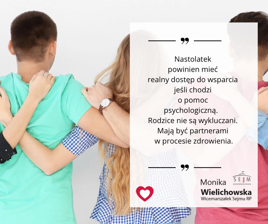 Projekt, który procedujemy w Sejmie zakłada, że osoby od 13. roku życia mogą skorzystać z pomocy psychologicznej bez zgody rodzica – ale nie w oderwaniu od rodziny. Ustawa włącza opiekunów w proces zdrowienia, o ile nie zagraża to dobru dziecka.