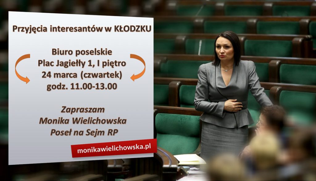 Przyjęcia interesantów w Kłodzku: 24 marca (godz. 11.30 – 13.00), Biuro Poselskie – Plac Jagiełły 1, I piętro