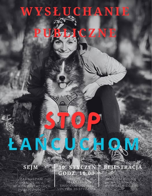 Jeśli chcesz wziąć udział w wysłuchaniu publicznym na temat obywatelskiego projektu ustawy „Stop łańcuchom, pseudohodowlom i bezdomności zwierząt” zajrzyj pod adres ![]()